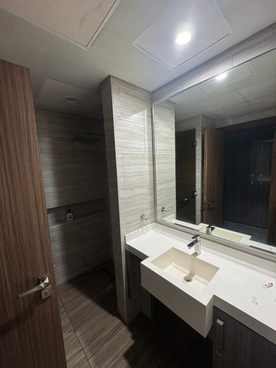 Complex infrastructure: gym with steam room and sauna, outdoor pool at podium level, recreation terrace, barbecue area, five levels of parking, retail stores, restaurants, cafes.