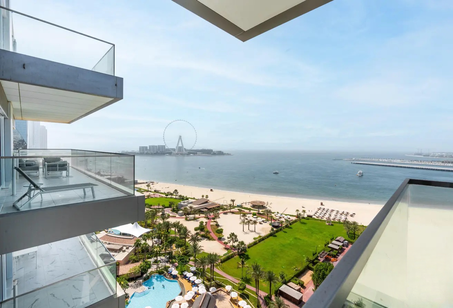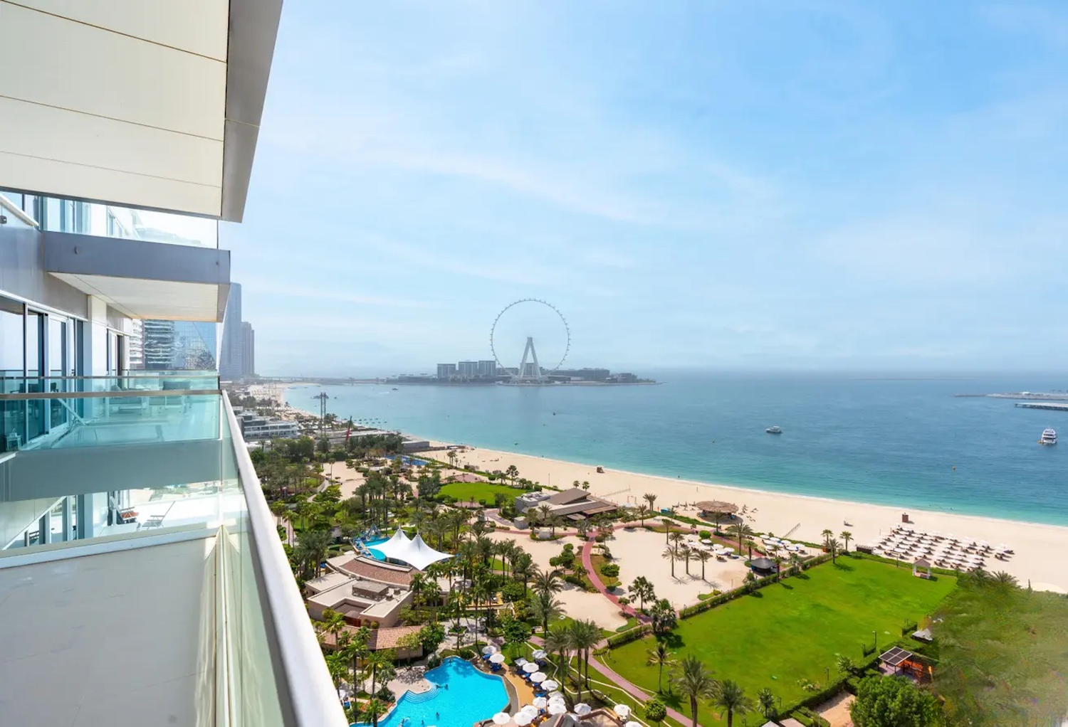 Infrastructure of the complex: gym, spa, 2 dedicated parking spaces for each apartment, cafes, restaurants, children’s club, barbecue area, 24-hour security service and concierge. Residents of the complex have their own direct access to the beach. The apartment also features a private ‘sky gardens’ area where residents can enjoy incredible views of the Ain Dubai Ferris wheel, the Persian Gulf and the Palm Jumeirah.