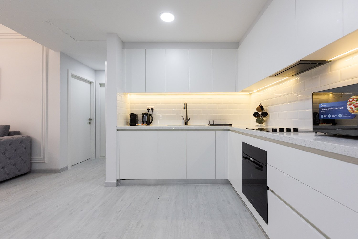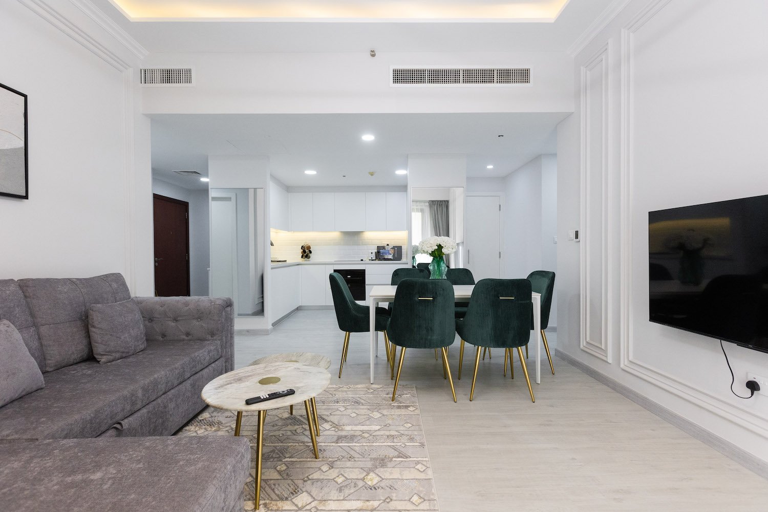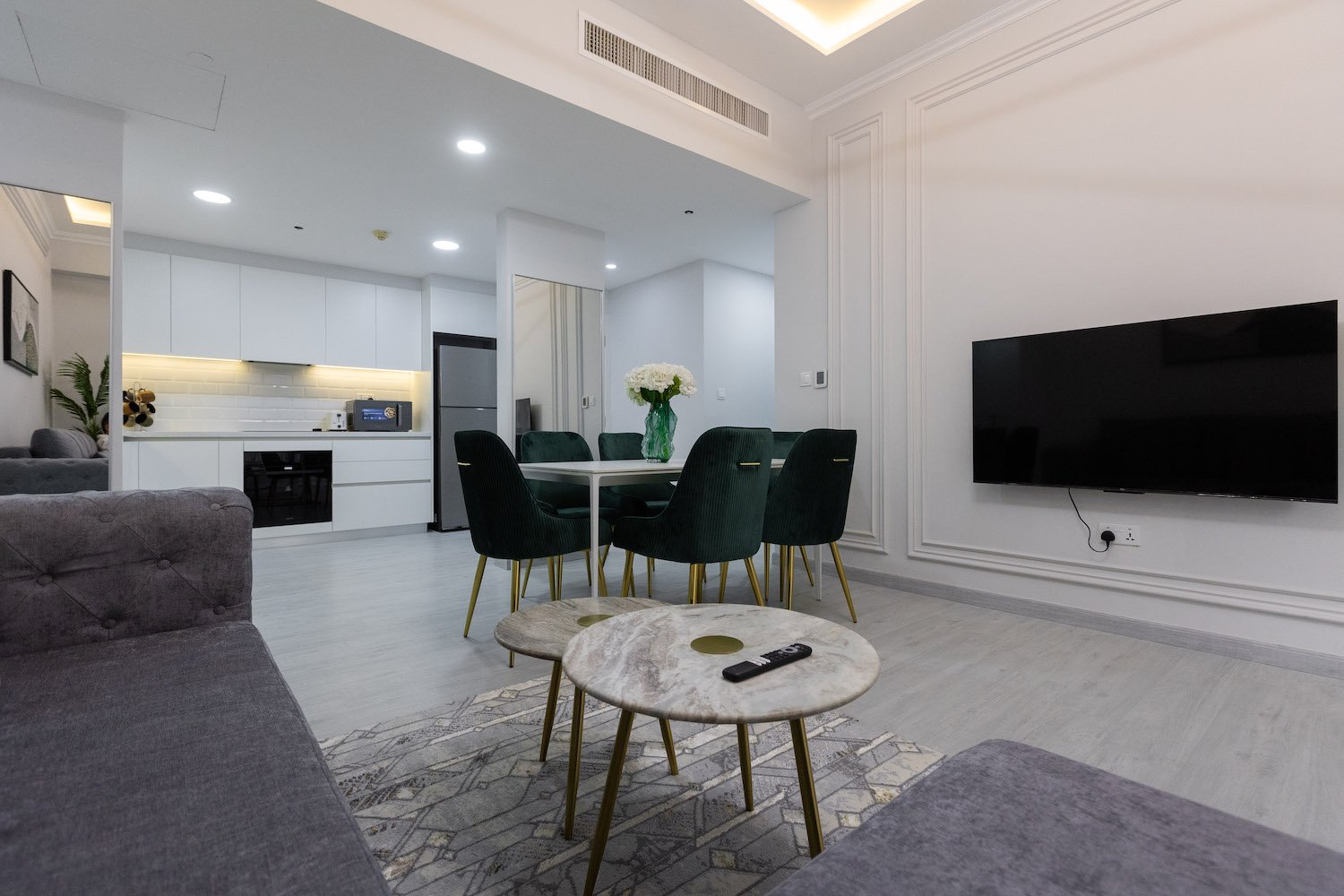 Basic equipment:apartments are sold with finishing, bathroom fixtures and fittings, fitted kitchen and built-in closets. Complete with furniture and appliances.