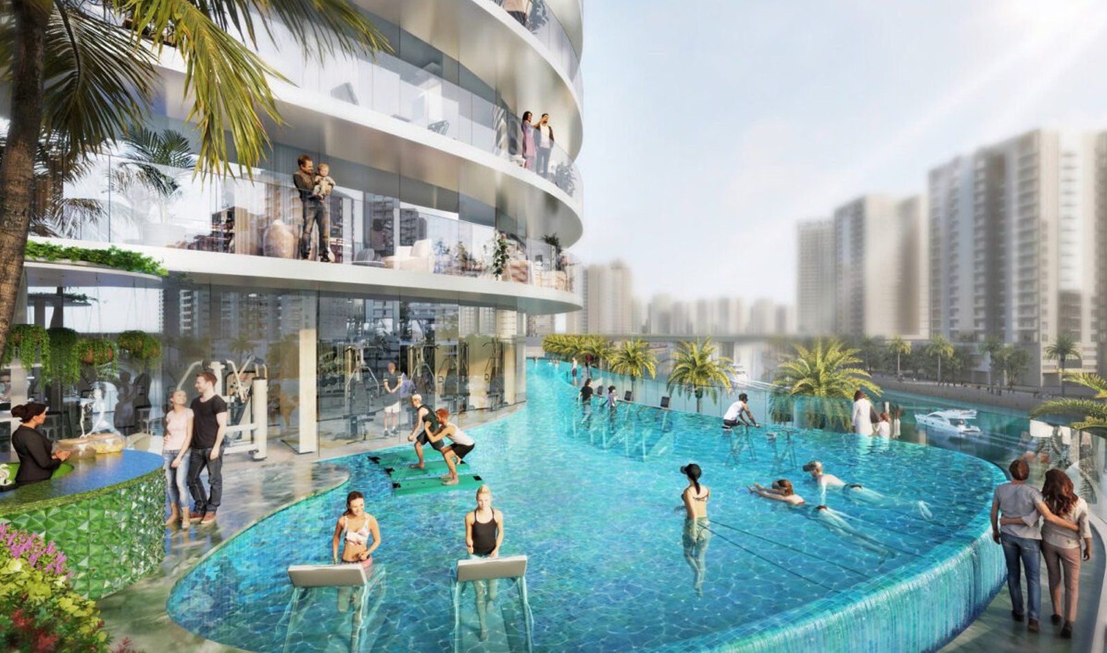 Basic equipment: the futuristic interiors of the studios and apartments will feature DAMAC Properties’ characteristic design with accent details, premium appliances and natural materials: wood, marble and stone. All residences will have a private balcony, fitted closets and a fully stocked kitchen.