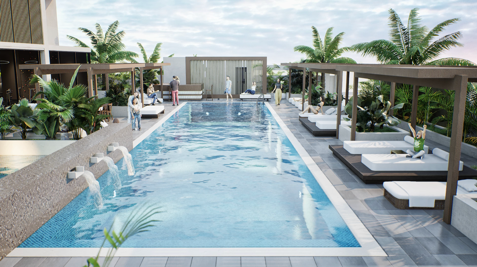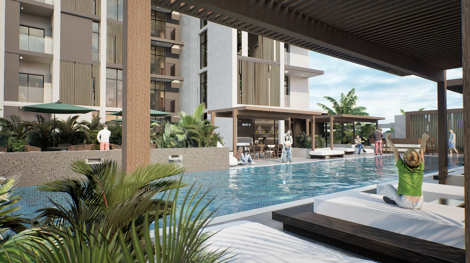 Complex infrastructure: large swimming pool, special children’s pool, fully equipped gym, open air lounge, grocery store and F&B store.