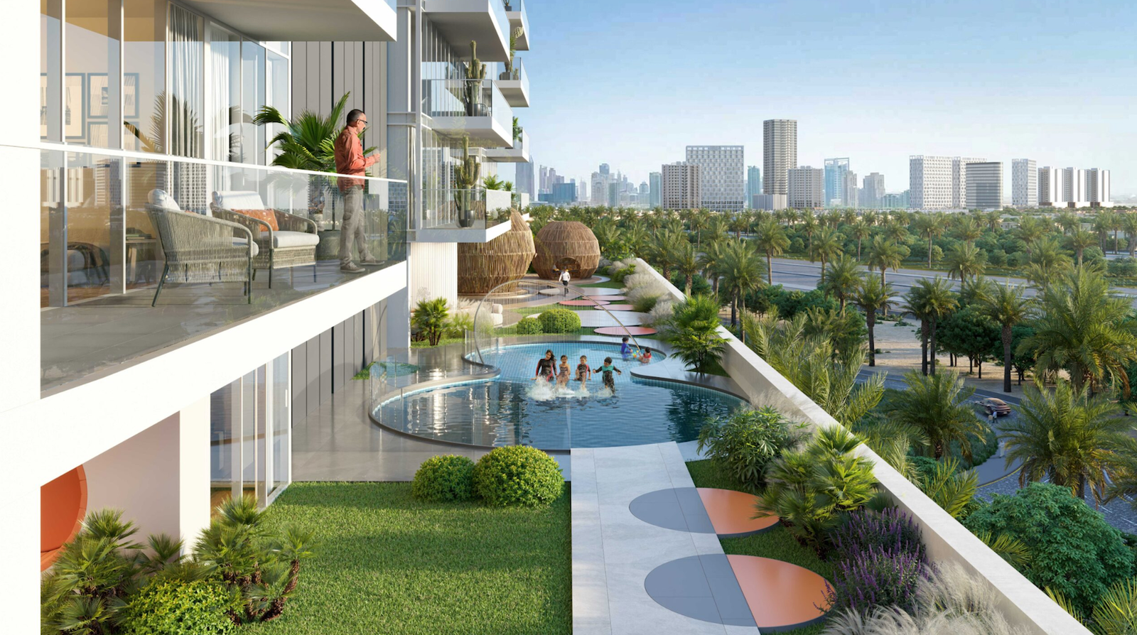 The complex is located in the popular Jumeirah Village Circle neighborhood in District 10. This place is perfect not only for families, young couples, but also for people focused on career growth. Since the complex is close to Al Khail Road, you can quickly reach Dubai Internet City, Dubai Media City and other places.