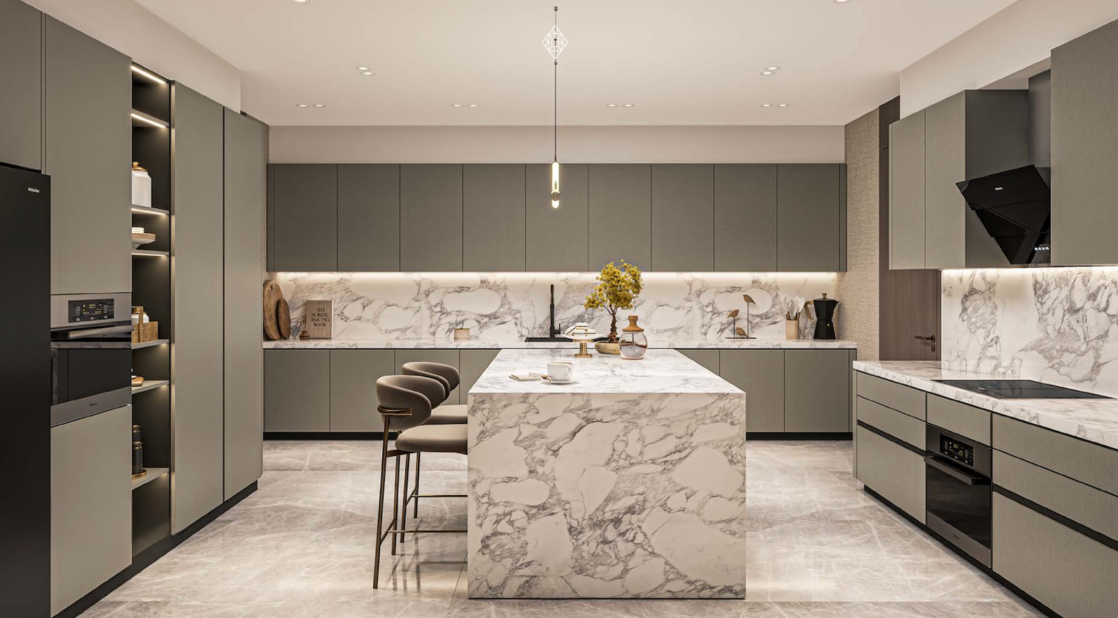 Each home features a fully equipped Italian kitchen with Miele appliances and a convenient Quooker faucet for maximum comfort and functionality.